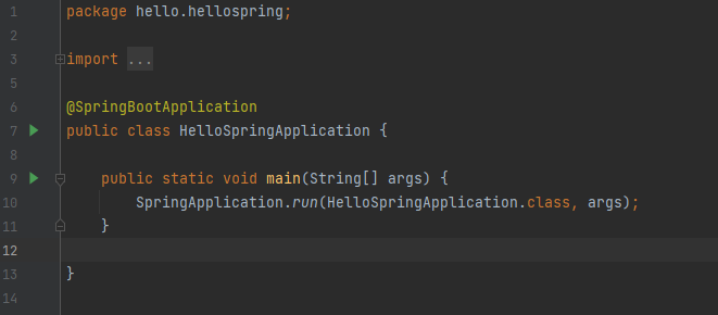 HelloSpringApplication 파일을 보면 main메소드가 선언되어있고 이를 실행하면