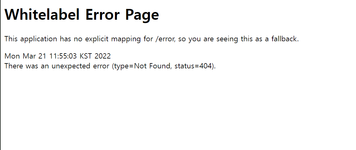 위와같은 화면이 나오게 된다. 하지만 밑줄이 그어져있는 hello를 들어가게되면 Error Page가 발생한다