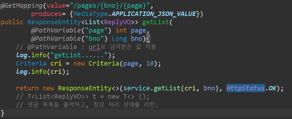 이제 임시로 댓글목록이 콘솔에 찍히도록 만들어본다.