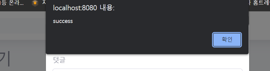 result값에 success가 들어가 alert(reuslt)로 sucess 문장이 출력된다.