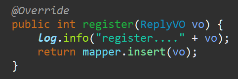 service는 매퍼에서 마이바티스 쿼리로 작성한 내용을 실행한다.