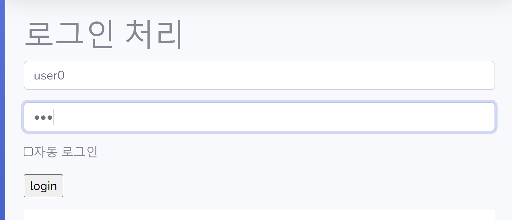 테스트코드로 만들었던 아이디와 비밀번호로 로그인을 하면된다.