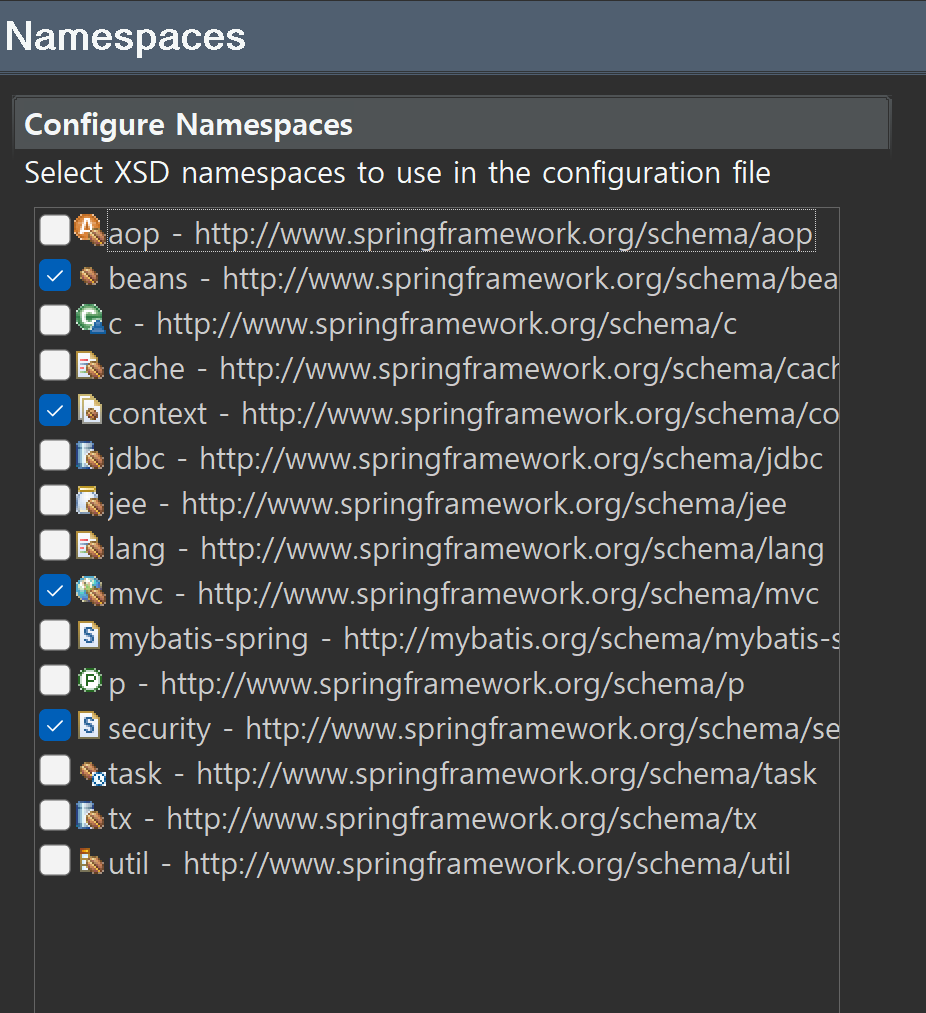 추가로 위에 spring-security. ~~ .xsd 라고 버전이 적혀있을텐데 버전을 지워줘야 오류가 발생하지않는다.