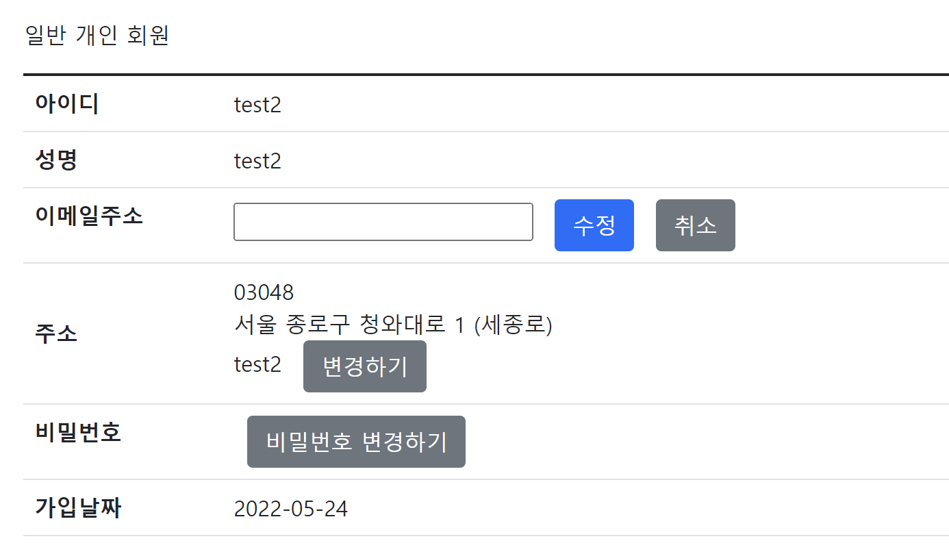변경할 이메일을 입력하고 수정을 누르면 아래 함수 이벤트와 연동되어 이메일이 수정되도록하였다.